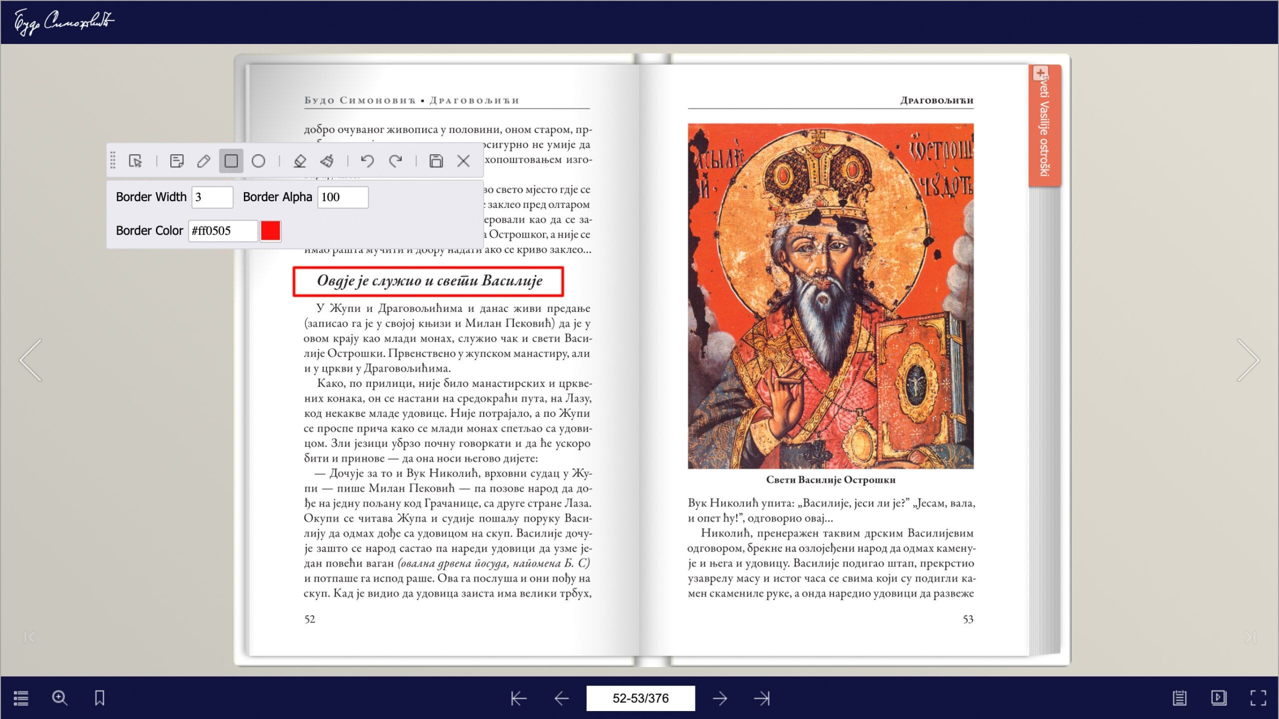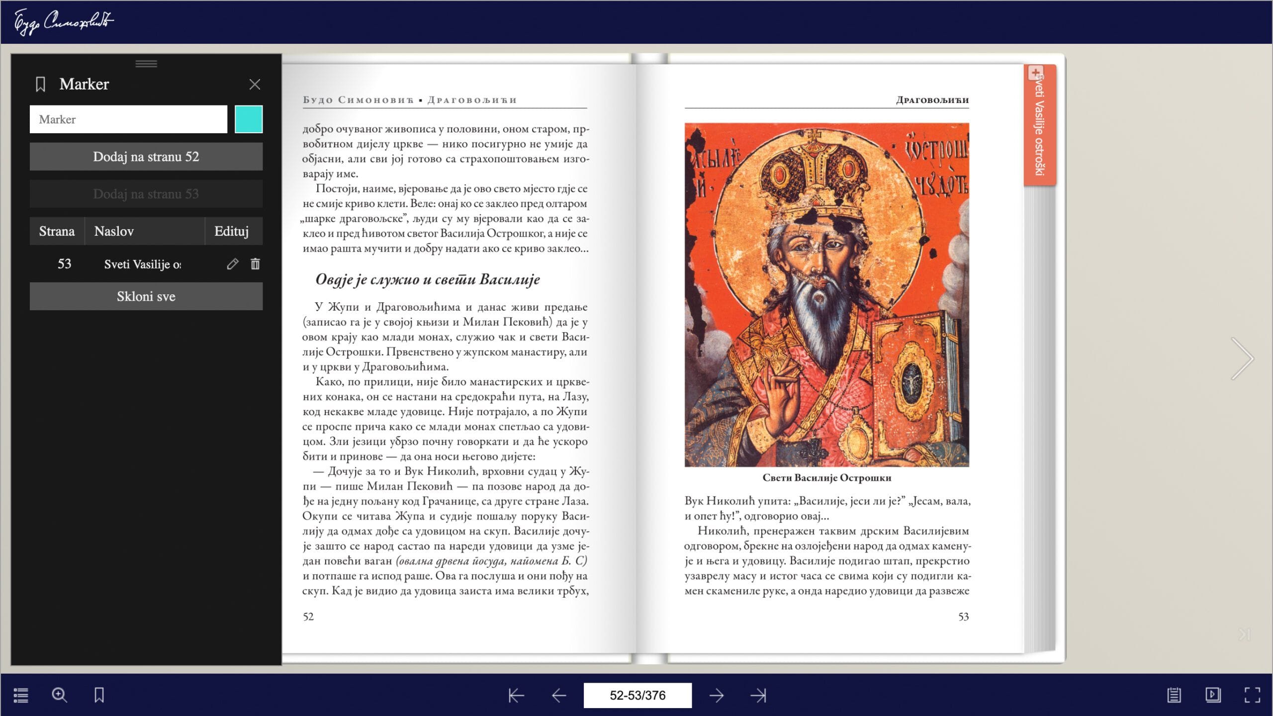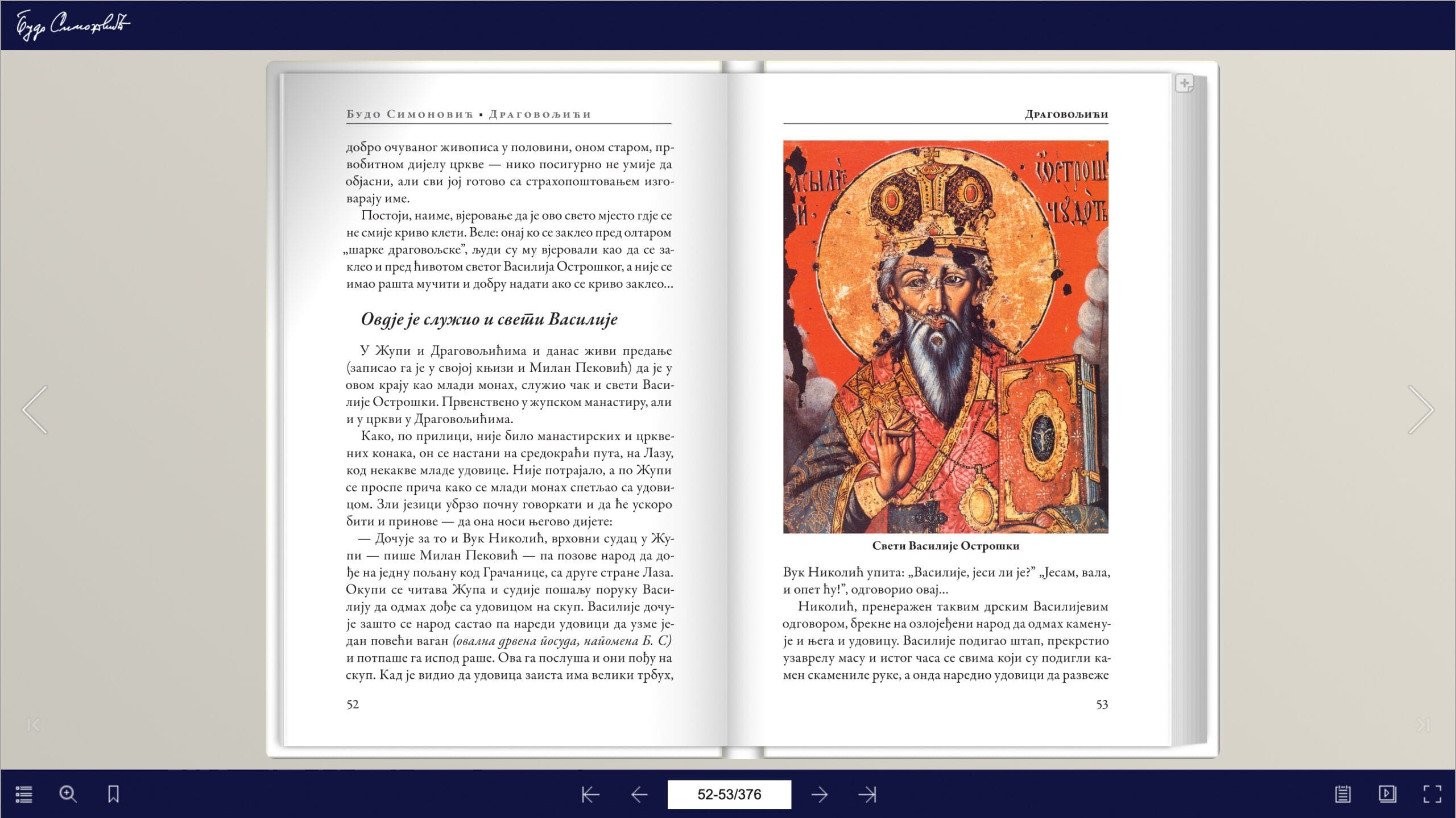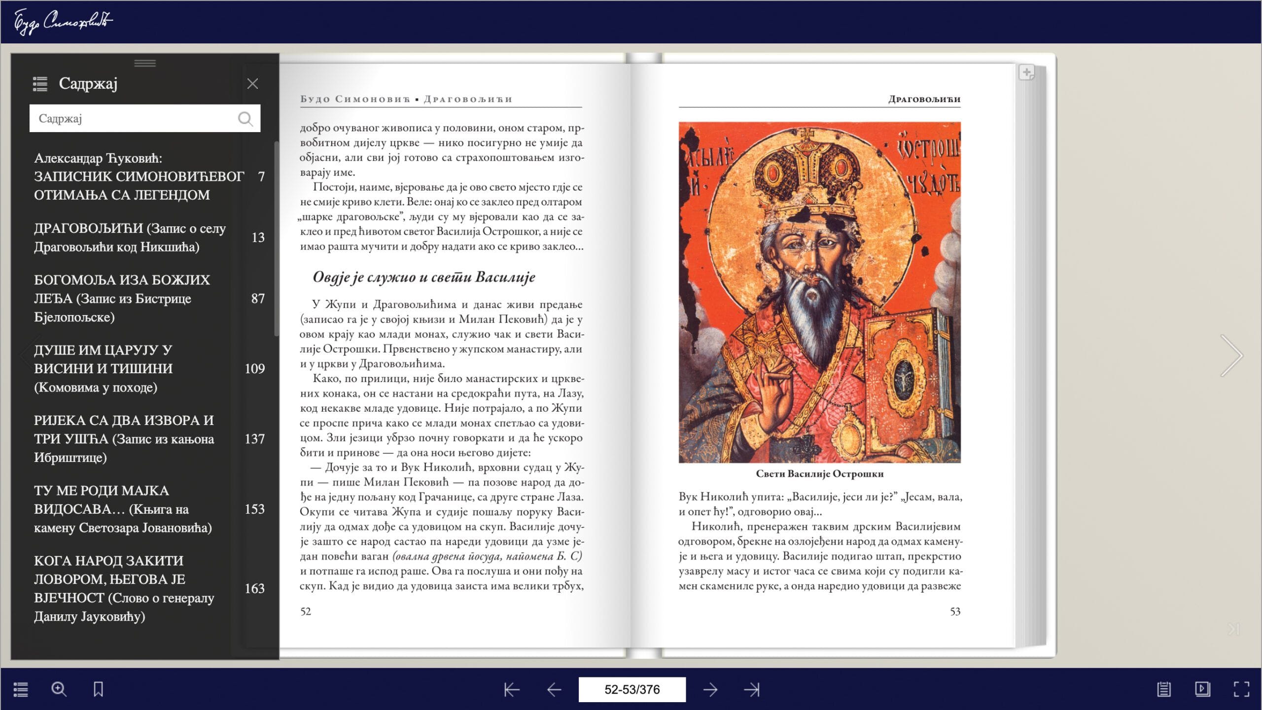 Кликом на икону отвара се садржај књиге. Кликом на неки понуђени наслов књига се отвара на тој страни.